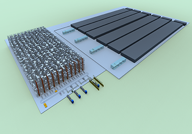 光伏產(chǎn)業(yè)在最近幾年時間里得到飛速發(fā)展,可分為光伏原材料如多晶硅、玻璃等以及光伏組件。大多數(shù)光伏產(chǎn)品是以整托形式出入庫,其重量較重,尺寸較大,且存儲量一般較大,給自動化物流設備帶來一定的挑戰(zhàn)。