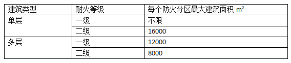 作為丙類二級(jí)耐火等級(jí)的單層廠房,每個(gè)防火分區(qū)的面積為8000㎡,多層廠房為4000㎡,當(dāng)采用自動(dòng)滅火系統(tǒng)時(shí),其面積可以增加1.0倍。