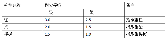 關(guān)于構(gòu)件的耐火等級(jí),應(yīng)符合如下表的要求(參見《建筑設(shè)計(jì)防火規(guī)范》表3.2.1):