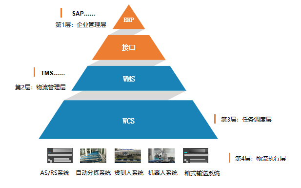 在這個架構(gòu)中,一般的理解,WCS是自動化執(zhí)行系統(tǒng)(AES)的監(jiān)控系統(tǒng)(monitor system),執(zhí)行系統(tǒng)則定義為控制層級。而在伍強科技的理解中,將WCS定義為作業(yè)指令的監(jiān)控與調(diào)度管理系統(tǒng),而在其下的執(zhí)行層,才是各個子系統(tǒng)的監(jiān)控層。這一改變是一個巨大的差別。