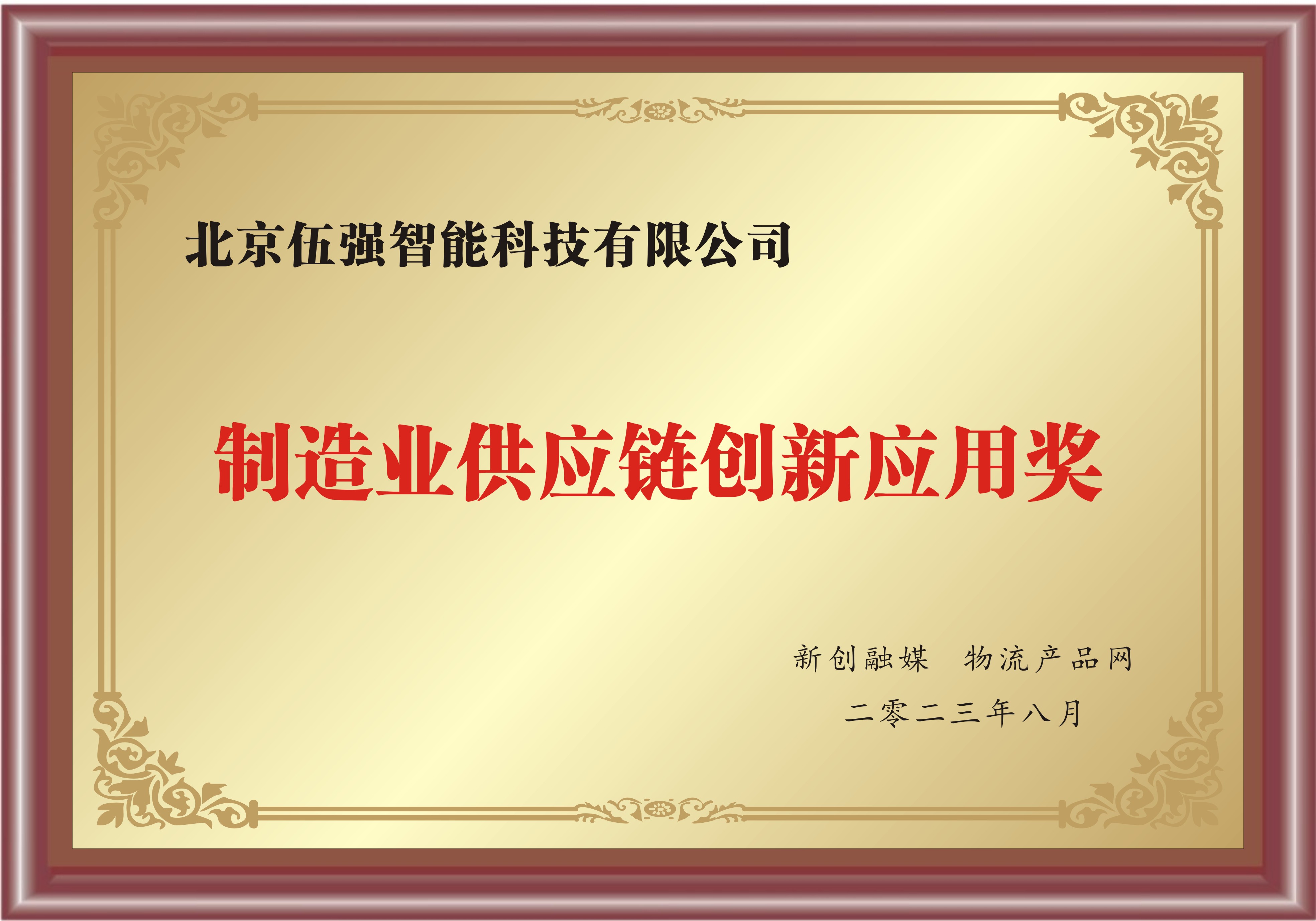 在下午進(jìn)行的頒獎典禮上,伍強(qiáng)智能科技榮獲“制造業(yè)供應(yīng)鏈創(chuàng)新應(yīng)用獎”。本次評比入選,是行業(yè)協(xié)會及專家代表對伍強(qiáng)供應(yīng)鏈及物流領(lǐng)域展現(xiàn)的綜合實(shí)力的高度認(rèn)可,也是激勵伍強(qiáng)將繼續(xù)為物流行業(yè)的發(fā)展及智能化轉(zhuǎn)型貢獻(xiàn)自己的力量。
