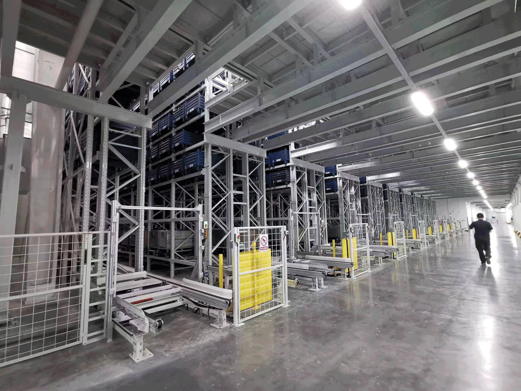 SEW車間智能化倉儲(chǔ)物流項(xiàng)目由伍強(qiáng)智能科技負(fù)責(zé)總集成,應(yīng)用了AS/RS系統(tǒng)、紅蟹四向穿梭車調(diào)度系統(tǒng)、WMS、WCS、SCADA、MCS(輸送線控制系統(tǒng))、RCS機(jī)器人調(diào)度系統(tǒng)等智能控制系統(tǒng),對接客戶的SAP和MES(制造執(zhí)行系統(tǒng))系統(tǒng),集成了傳感器、驅(qū)動(dòng)與控制、數(shù)字孿生等先進(jìn)技術(shù);采用了伍強(qiáng)智能科技的高速堆垛機(jī)、高速提升機(jī)、智能調(diào)度穿梭車、輸送機(jī)及天津SEW提供的無接觸充電技術(shù)智能搬運(yùn)AGV等多種智能設(shè)備,為客戶原材料、半成品、成品的物料等存儲(chǔ)、分揀、配送提供了高效的解決方案。實(shí)現(xiàn)了多設(shè)備協(xié)同作業(yè)與有序銜接,儲(chǔ)位智能定位,貨到人智能揀選,可以快速、高效地完成各種操作,實(shí)現(xiàn)了產(chǎn)線的無人化配送,將智能化貫穿全部生產(chǎn)制造全流程。